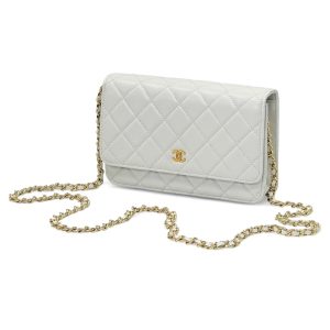 CHANEL сумка Woc гладкая кожа в клетку белая фурнитура золото на бусах