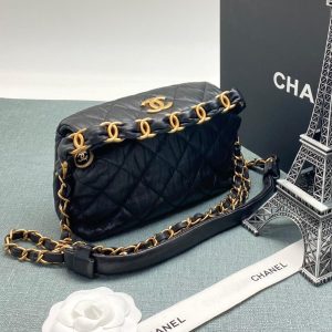 CHANEL сумка квадратная гладкая кожа в клетку черная