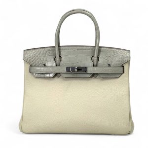 HERMES Birkin 30см сумка комбинированная серая кожа того-крок серебро