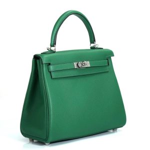 HERMES Kelly 25 см сумка зеленая кожа того серебро