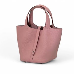 HERMES Picotin 18 см сумка розовая кожа того серебро