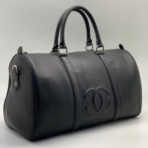 CHANEL дорожная сумка 45 см гладкая кожа тисненый логотип черная