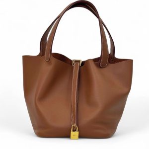 HERMES клатч POCHETTE 22 см оранжевая кожа свифт золото