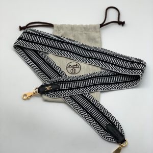 HERMES ремень для сумки текстиль черный белая строчка фурнитура золото