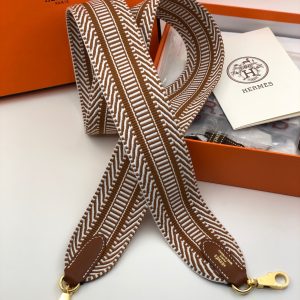 HERMES ремень для сумки текстиль светло-коричневый белая строчка