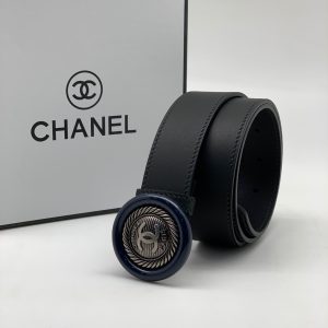 CHANEL ремень черный пряжка серебро с синим кольцом
