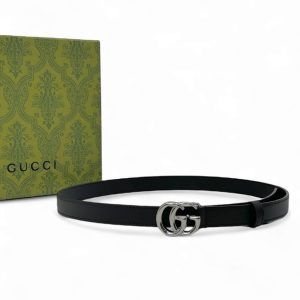 GUCCI ремень 18 мм черный гладкая кожа пряжка GG серебро