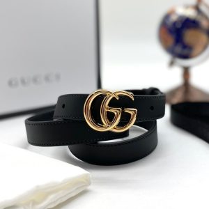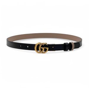 GUCCI ремень черный тонкий гладкая кожа пряжка GG золото