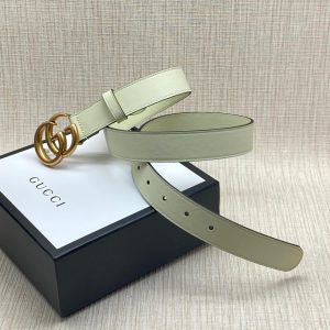 GUCCI ремень тонкий молочный гладкая кожа пряжка GG золото