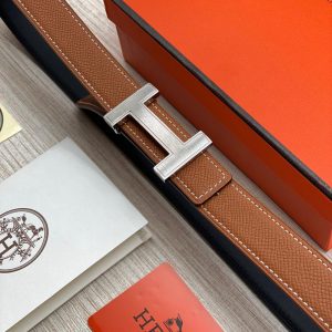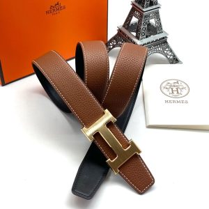 HERMES ремень черно-горчичный с белой строчкой 2-х сторонний тонкий кожа того пряжка золото