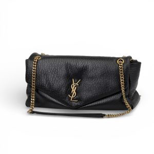 YSL сумка тесненная черная кожа на золоте