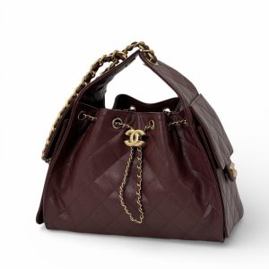 CHANEL сумка Hobo 26 см кожа икра бордовая золото