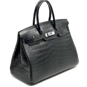 HERMES сумка Birkin 35 см черная кожа крокодила серебро