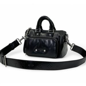 LV сумка черная гладкая кожа серебро