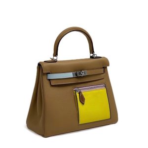 HERMES сумка Kelly 25 см бежевая кожа свифт серебро