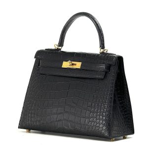 HERMES сумка KELLY 28 см черная кожа крок золото