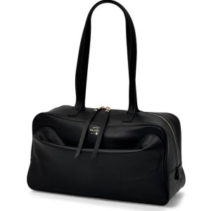 BURBERRY сумка Belt из белой парусины с окантовкой из черной кожи с коричневыми ручками
