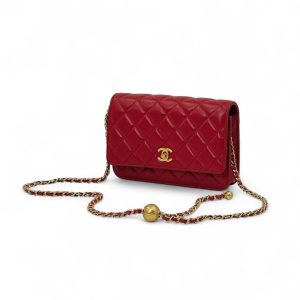 CHANEL сумка Woc гладкая кожа в клетку красная фурнитура золото