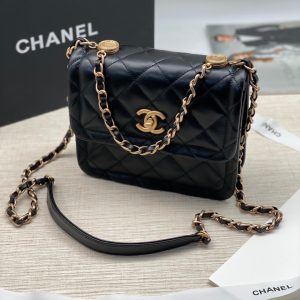 CHANEL сумка из черной гладкой кожи с твердым клапаном квадратная
