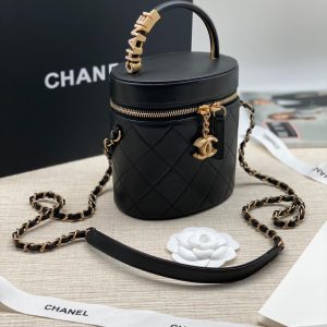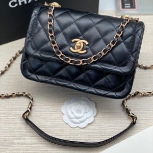 CHANEL сумка вечерняя маленькая с твердой ручкой и ремешком вплетенном в цепочку из черной кожи