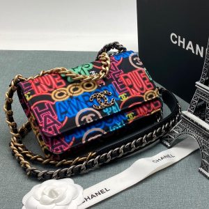 CHANEL сумка Woc черная текстильная с цветным принтом фурнитура золото