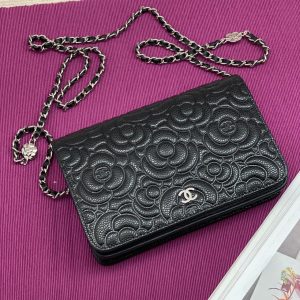 CHANEL сумка Woc кожа икра с тиснением цветов фурнитура серебро