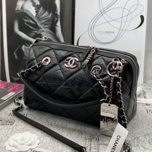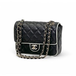 CHANEL сумка черная гладкая кожа с белой окантовкой золото