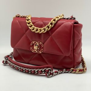 CHANEL сумка-конверт 18 см черная зернистая кожа с твердой бордовой ручкой