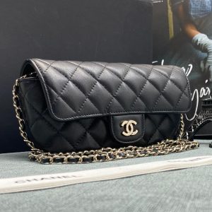 CHANEL классическая мини-сумка конверт из жчерной гладкой кожи фурнитура золото