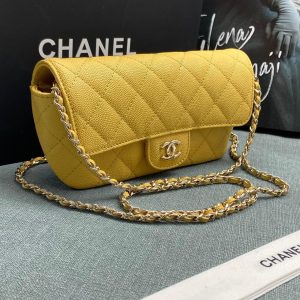 CHANEL классическая мини-сумка конверт из желтой кожи Caviar фурнитура золото