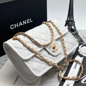 CHANEL мини-сумка конверт 25 см белая кожа Caviar в клетку фурнитура золото