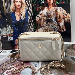 CHANEL мини-сумка гладкая кожа в клетку квадратная серая