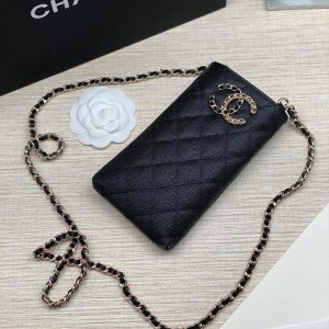 CHANEL мини-сумка чехол с клапаном для телефона в клетку черная фурнитура черный глянец