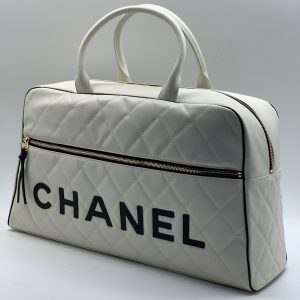 CHANEL спортивная сумка гладкая кожа в клетку белая