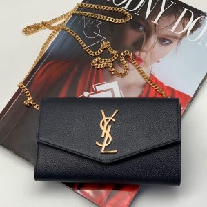SL сумка с клапаном маленькая кожа икра черная логотип золото