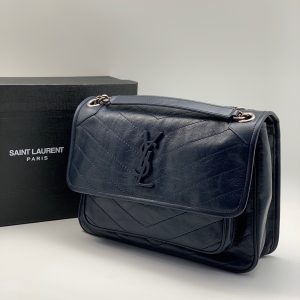 SL сумка с клапаном маленькая кожа икра синяя логотип золото
