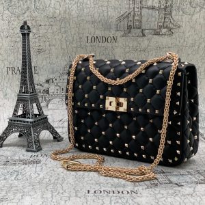 VALENTINO сумка с клапаном с шипами черная золото маленькая