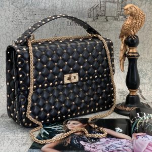 VALENTINO сумка с клапаном с шипами черная золото большая