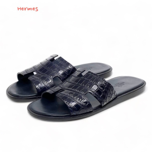 HERMES шлепанцы крокодил H темно-синие