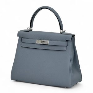 HERMES Kelly 28 см сумка голубая кожа того серебро