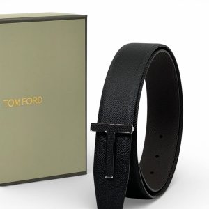 TOM FORD ремень кожа эпсом черно-коричневый пряжка эпсом
