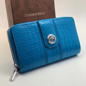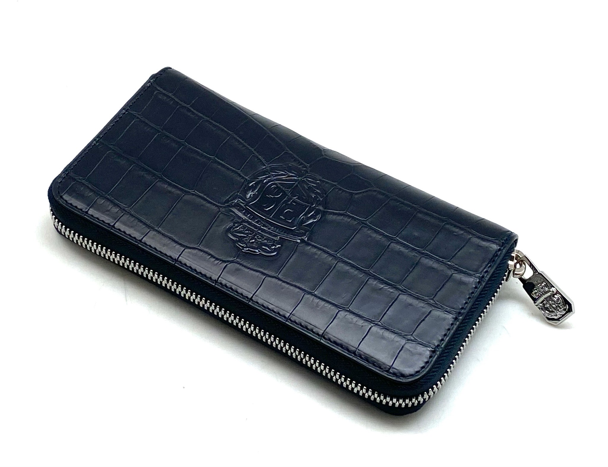 BILLIONAIRE кошелек крокодил синий тисненый логотип