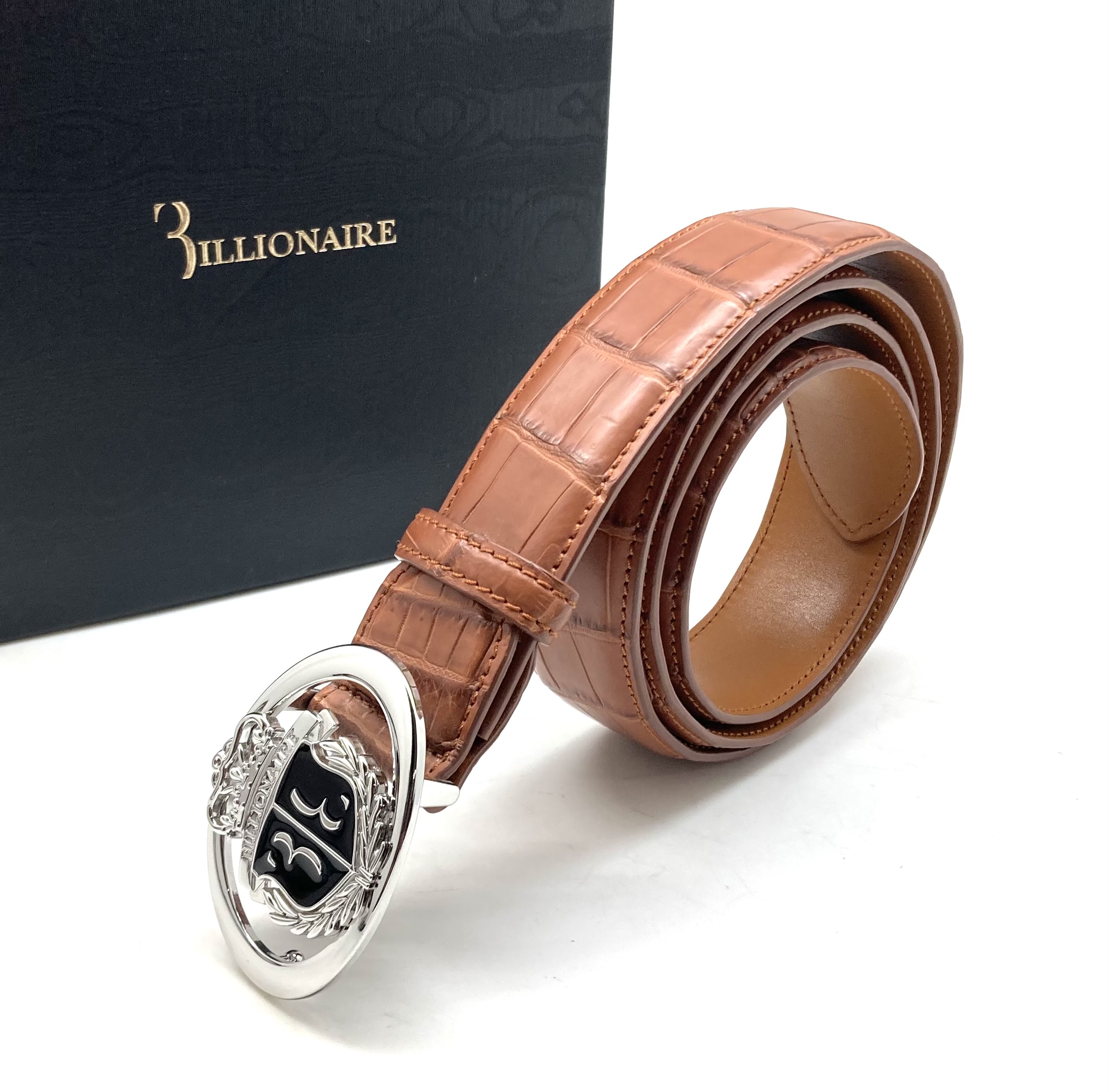 BILLIONER ремень крокодил светло-коричневый пряжка серебро
