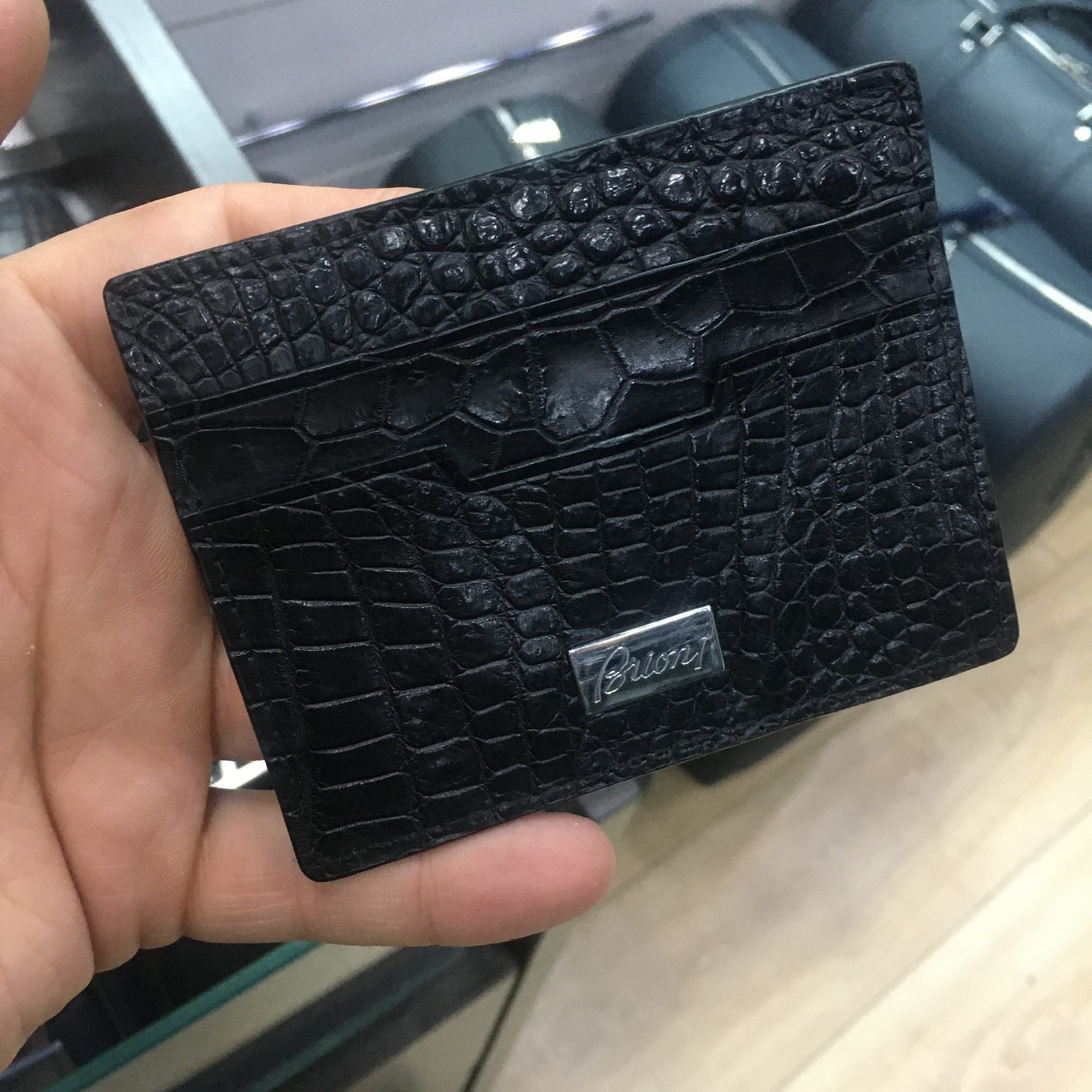 BRIONI визитница крокодил 4 визитки логотип серебро черная