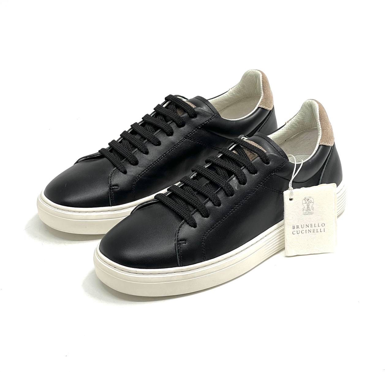 BRUNELLO кеды черные кожа коричневый задник над пяткой