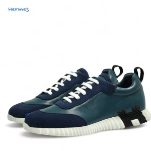 HERMES кроссовки зеленые кожа с замшей на белой подошвой