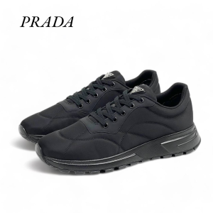 PRADA кроссовки черные тканевые металлический лого на язычке