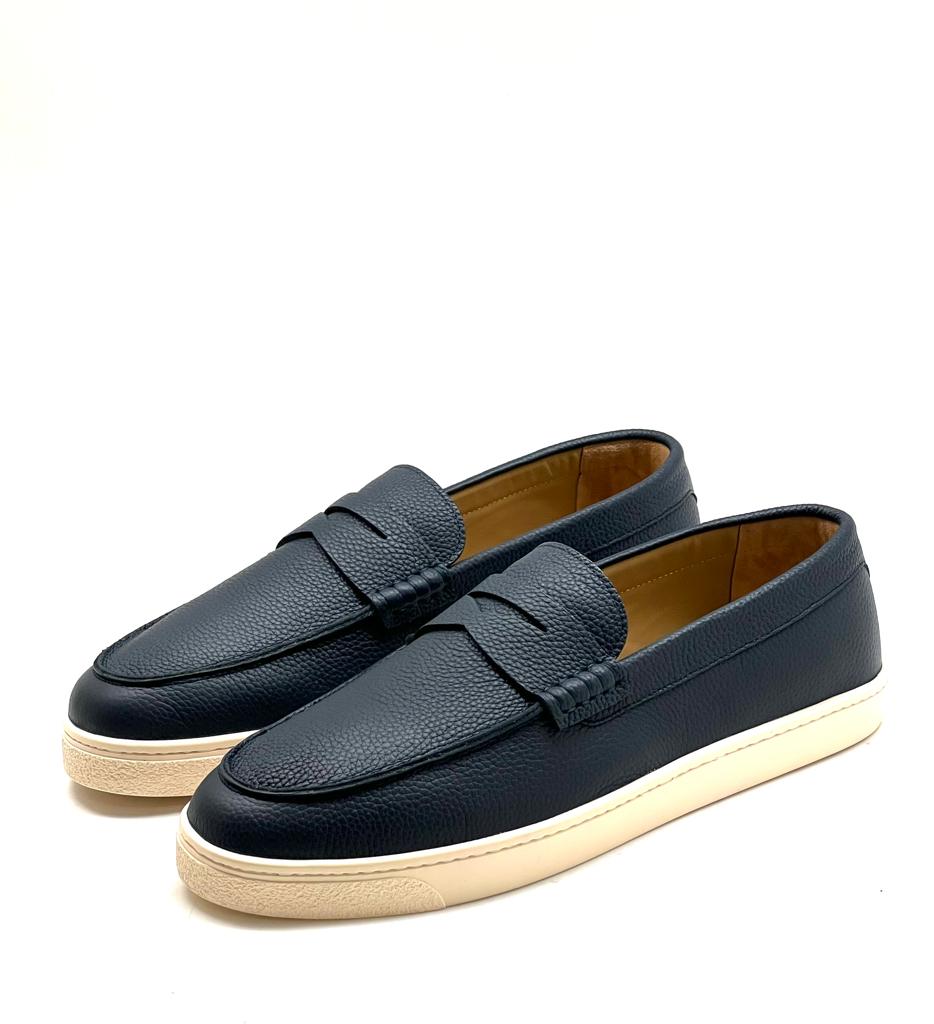 LORO PIANA лоферы низкие замша синие с белой подошвой