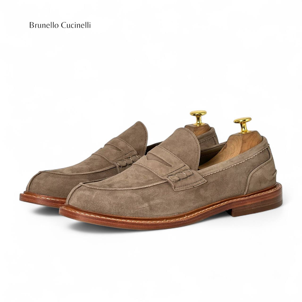 BRUNELLO лоферы замша темно-серые коричневая твердая классическая подошва