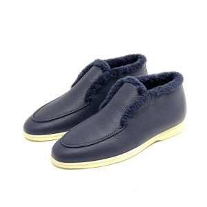 LORO PIANA лоферы высокие с мехом наружу на белой подошве синяя кожа